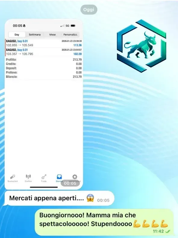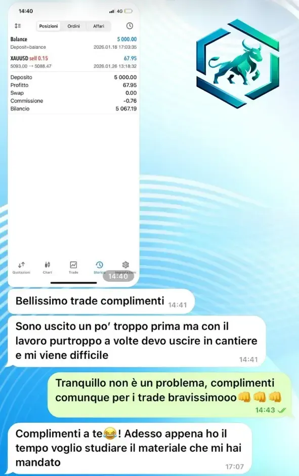 Piena trasparenza e accesso alle mie idee e analisi di trading.